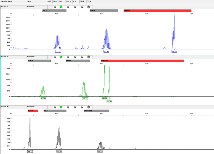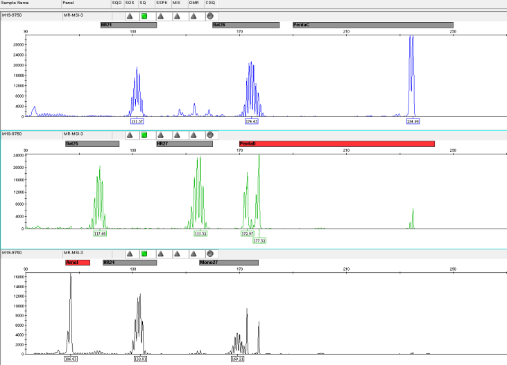 微衛(wèi)星是人類基因組的一段串聯(lián)重復(fù)序列,一般在1~6bp之間,又被稱作短串連重復(fù)(Short Tandem Repeats,STRs)或簡單重復(fù)序列(Simple Sequence Repeat,SSRs)。 微衛(wèi)星不穩(wěn)定(Microsatellite Instability,MSI)指的是微衛(wèi)星重復(fù)次數(shù)減少或者增加,微衛(wèi)星不穩(wěn)定的內(nèi)在機制是錯配修復(fù)(MMR)系統(tǒng)失調(diào),從而限制了糾正微衛(wèi)星自發(fā)的長度改變的體細(xì)胞突變的能力,體細(xì)胞突變積累,最終形成MSI。
