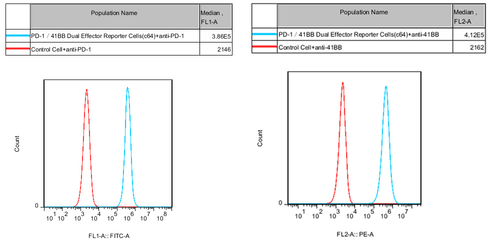 Figure 2. Recombinant PD1 41BB Dual Effector Reporter Cell stably expressing PD-1 and 41BB.