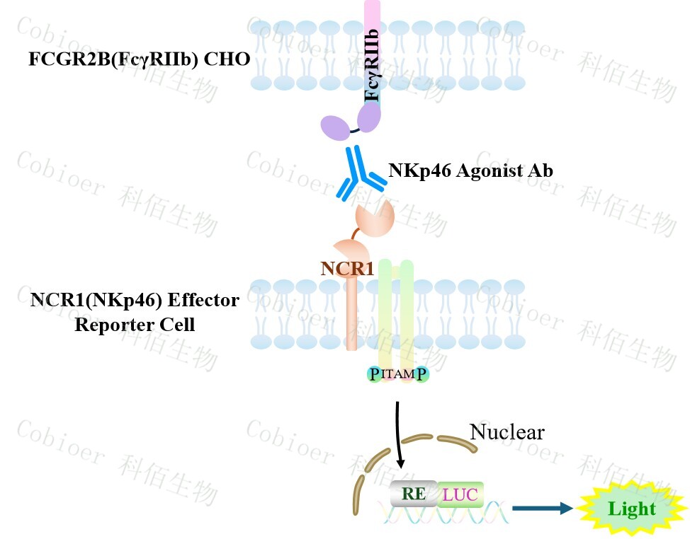NCR1(NKp46) Effector Reporter 報告基因藥靶模型很好的模擬了體內(nèi) NKp46 的信號轉(zhuǎn) 導過程,原理見下圖 所示。![]() Figure 1. NCR1(NKp46) Effector Reporter 細胞模型原理圖