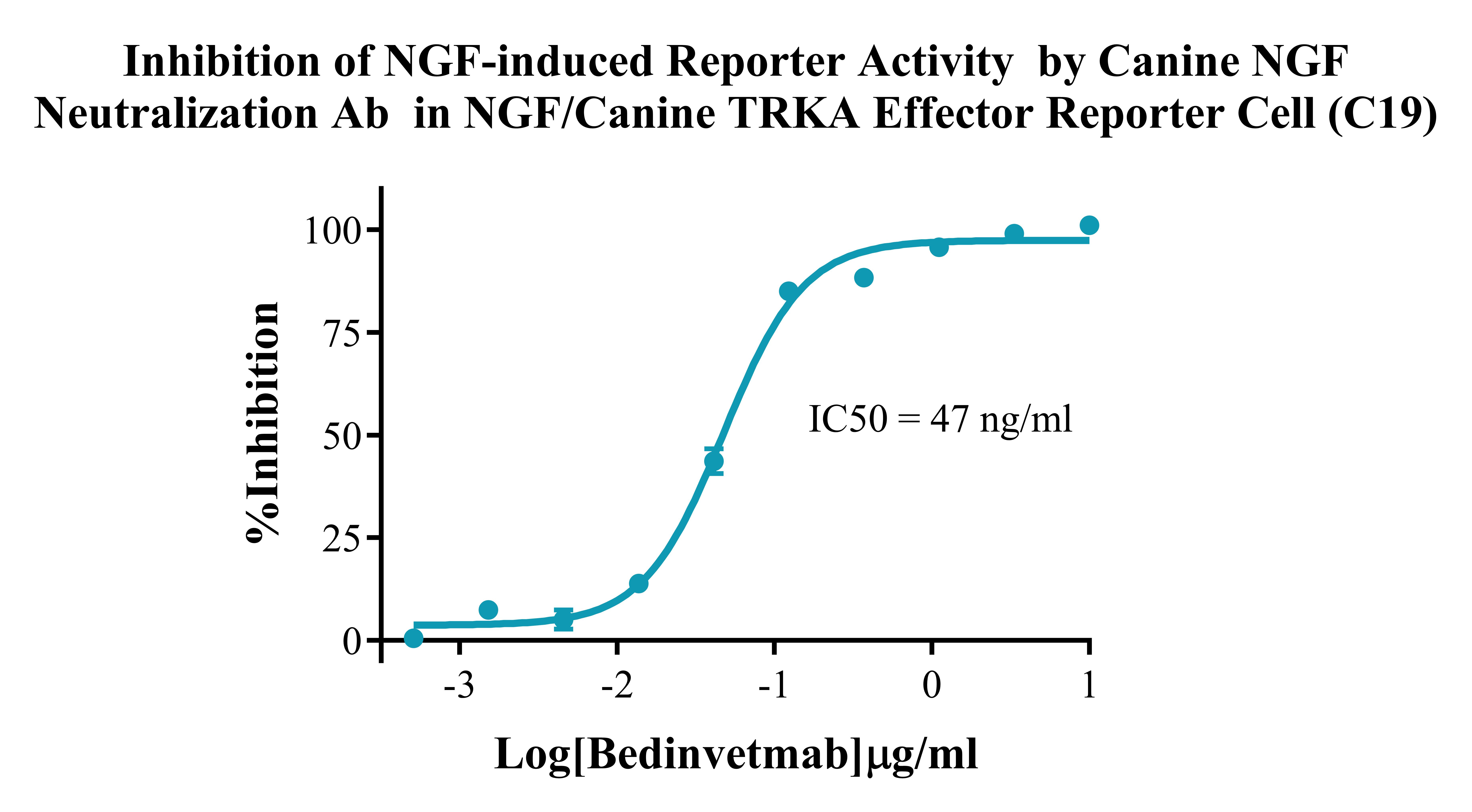 Figure 3. Inhibition of NGF-induced Reporter Activity by Canine NGF Neutralization Ab in NGF/Canine TRKA Effector Reporter Cel1 (C19).