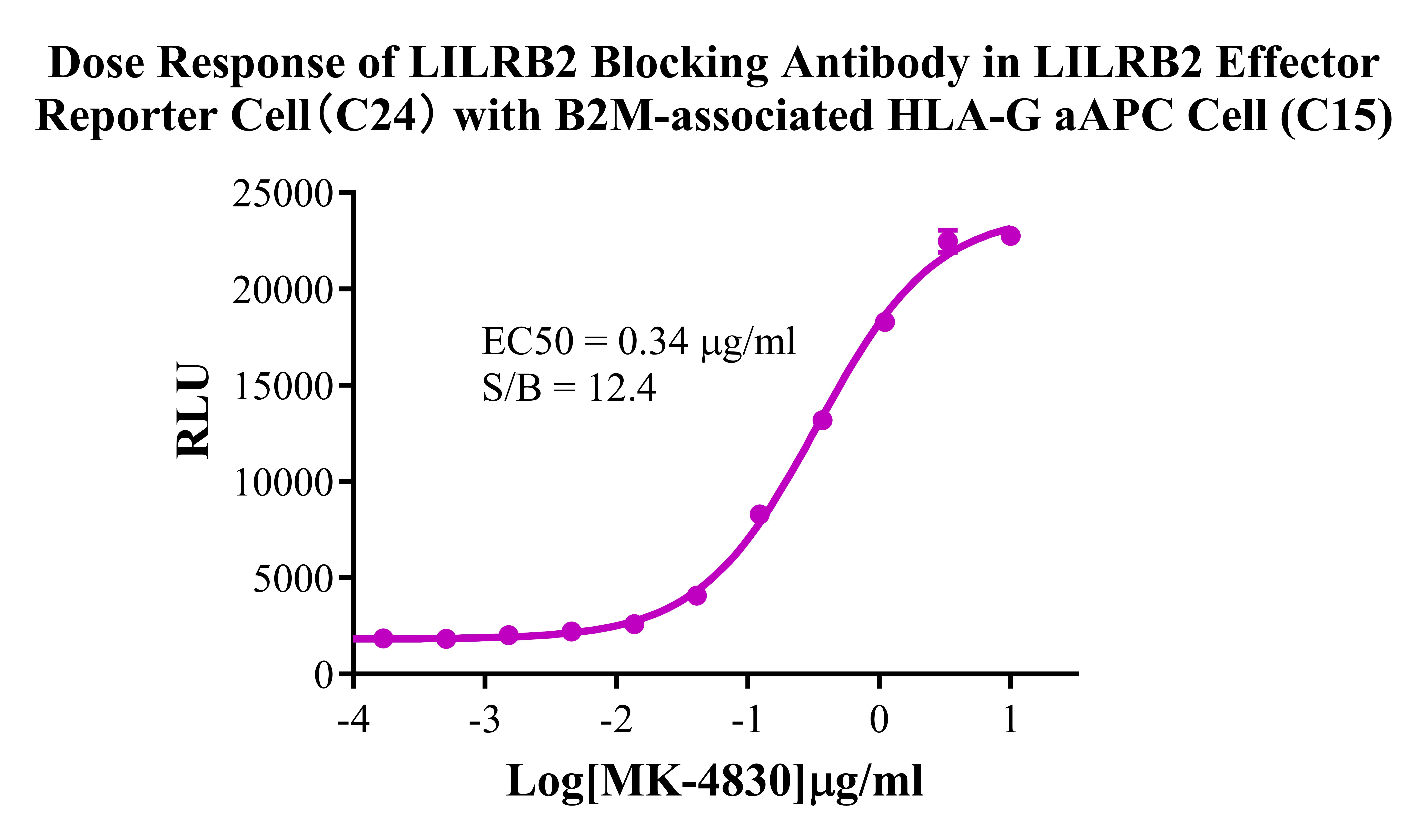 Figure 3.Dose Response of LILRB2 Blocking Antibody in LILRB2 Effector Reporter Cell (C24) With B2M-associated HLA-G/aAPC Cell(C15). |