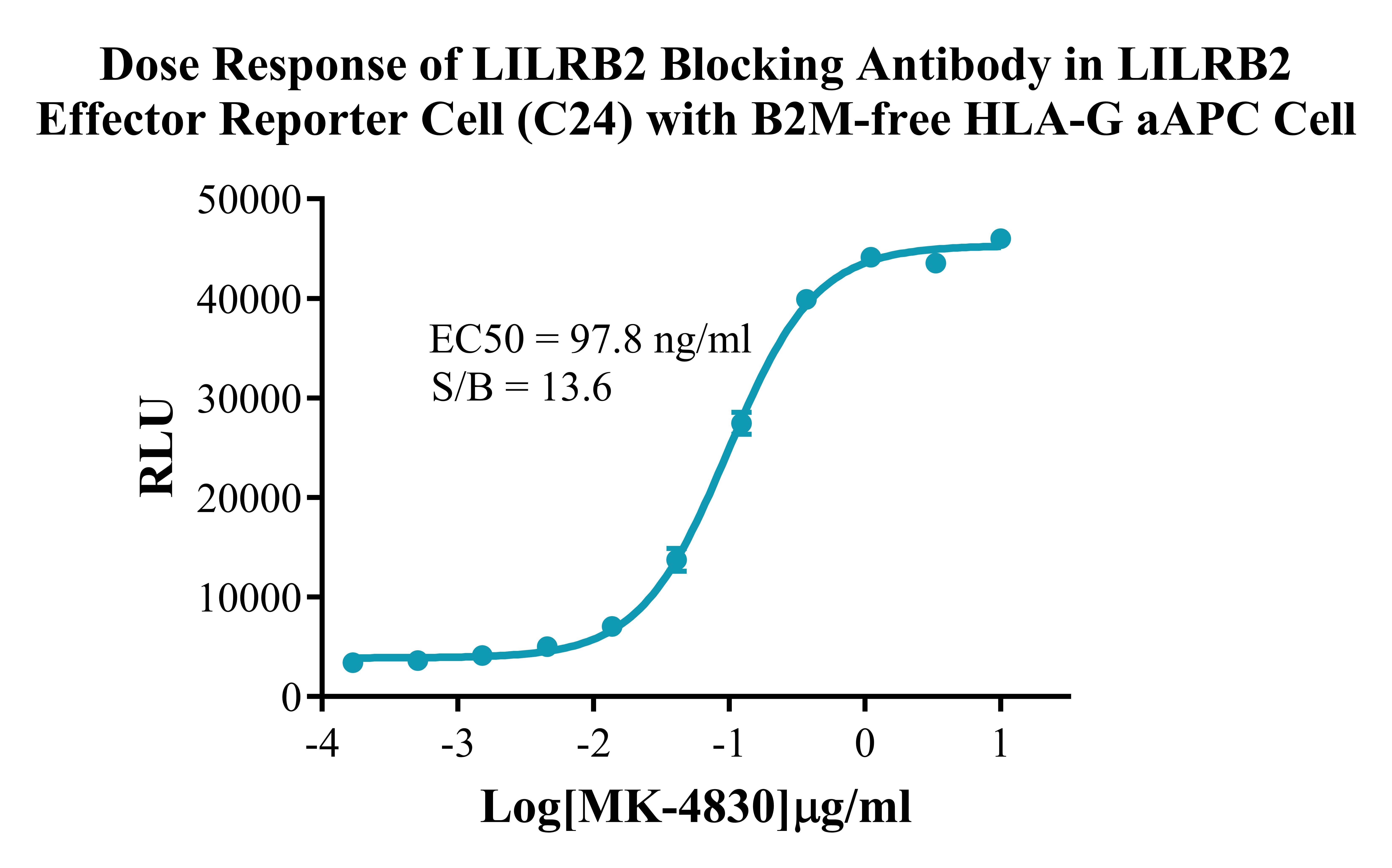 Figure 4. Dose Response of LILRB2 Blocking Antibody in LILRB2 Effector Reporter Cell (C24) With B2M-free HLA-G/aAPC Cell. |