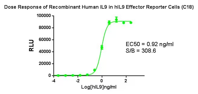 Figure 3. Dose Response of Recombinant Human lL9 in hlL9 Effector Reporter Cells (C18) |