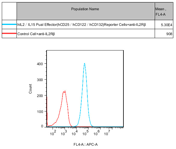 Figure 3. Recombinant hIL2/IL15 Dual Effector(hCD25/hCD122/hCD132) Reporter Cell constitutively expressing IL2Rβ. |