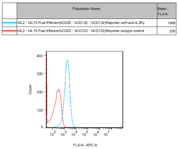 Figure 2. Recombinant hIL2/IL15 Dual Effector(hCD25/hCD122/hCD132) Reporter Cell constitutively expressing IL2Rα. |
