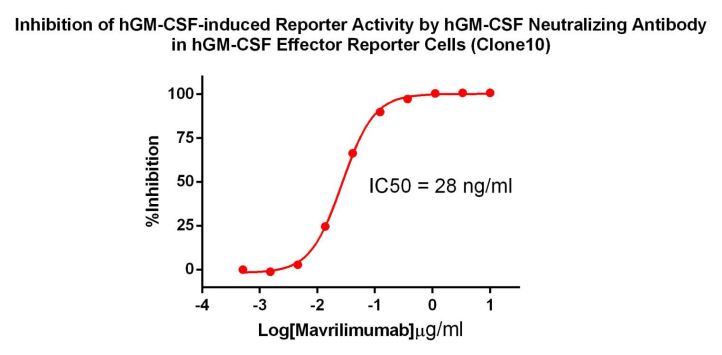 Figure 2. Inhibition of hGM-CSF-induced Reporter Activity by hGM-CSF Neutralizing Antibody in hGM-CSF Effector Reporter Cells (Clone 10).