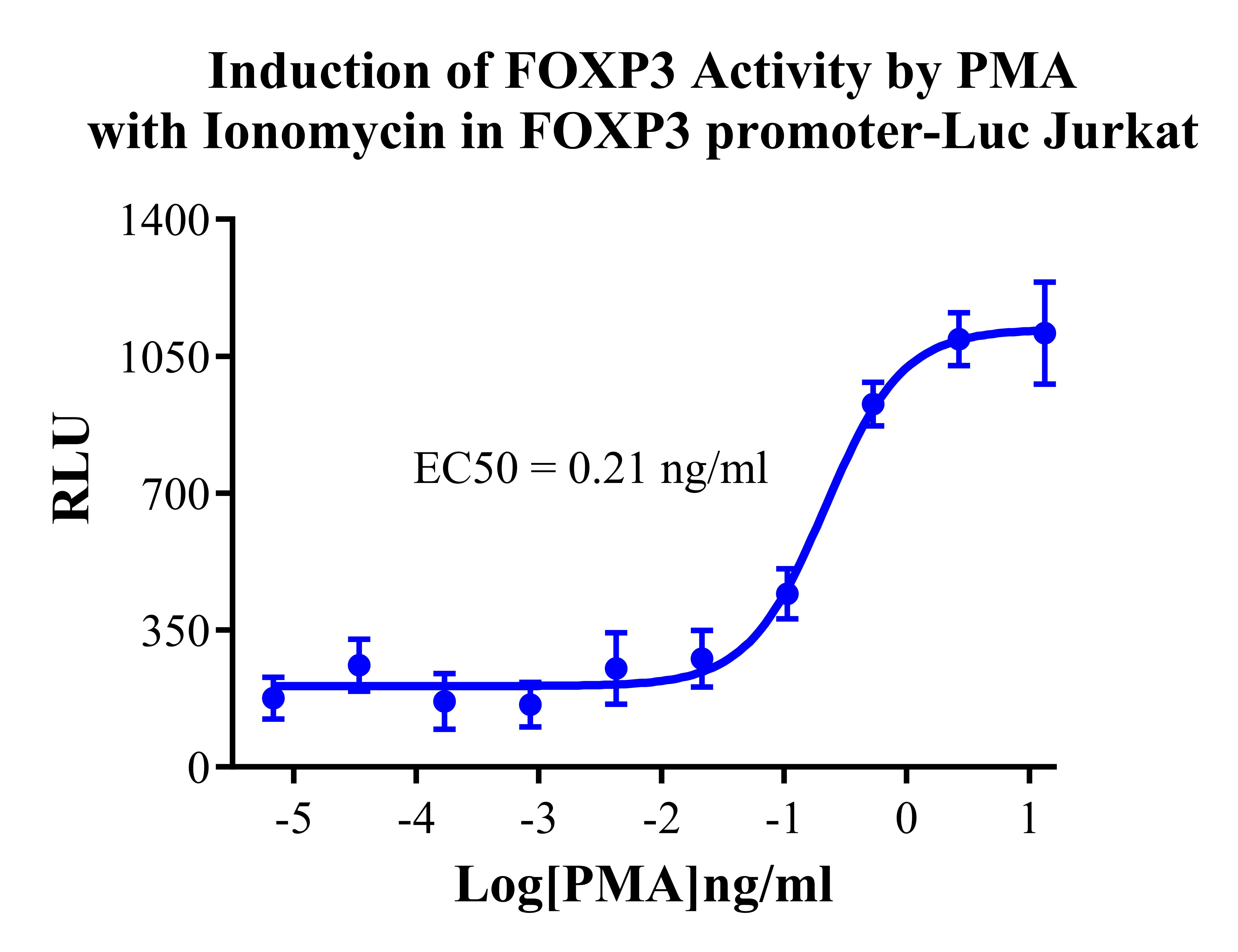 Figure 1. Detect Luciferase assay by Ultra Luciferase Detection Kit CBPH0001(we strongly suggest to purchase from Cobioer). Induction of FOXP3 Activity by PMA with lonomycin in promoter-Luc Jurkat . |