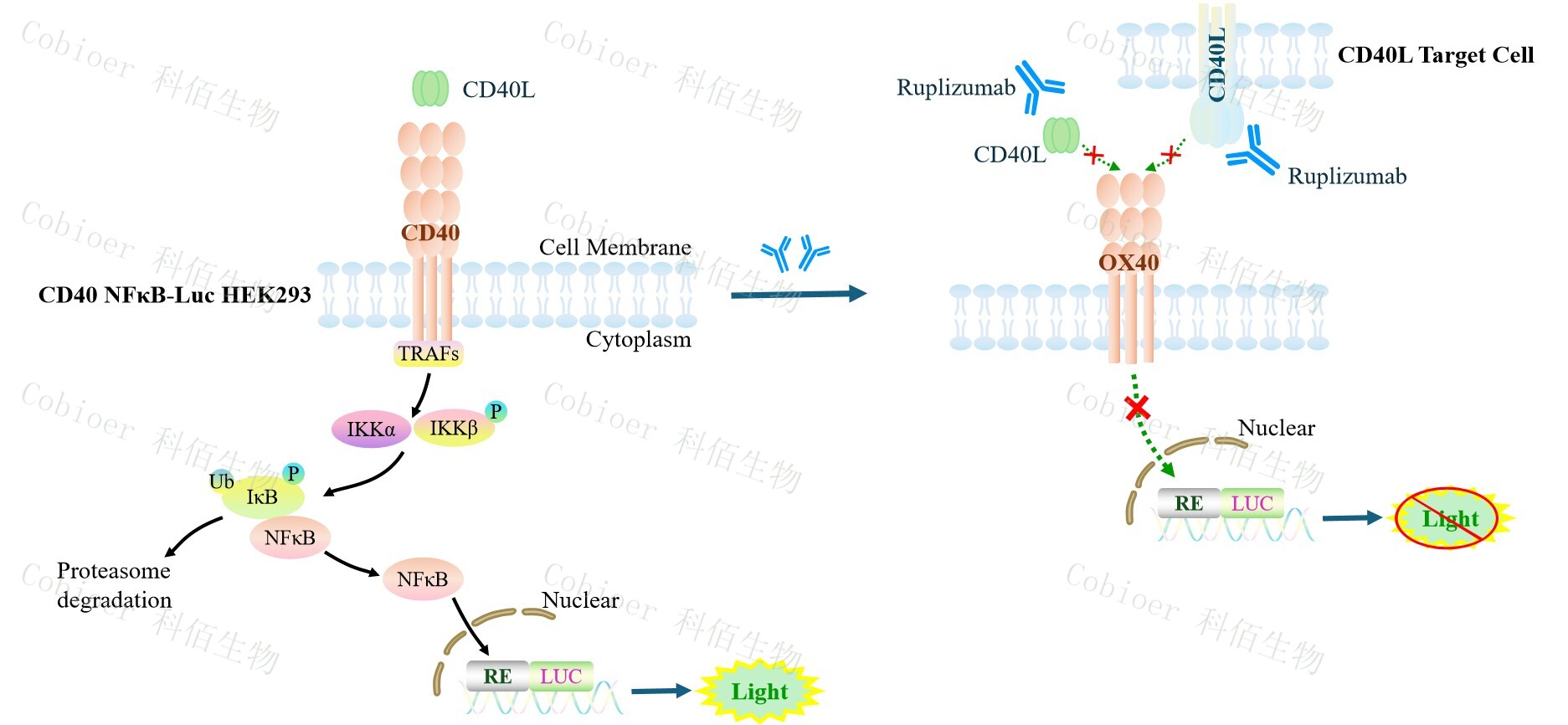 Figure 1. CD40 NFκB-Luc HEK293 細胞模型原理圖