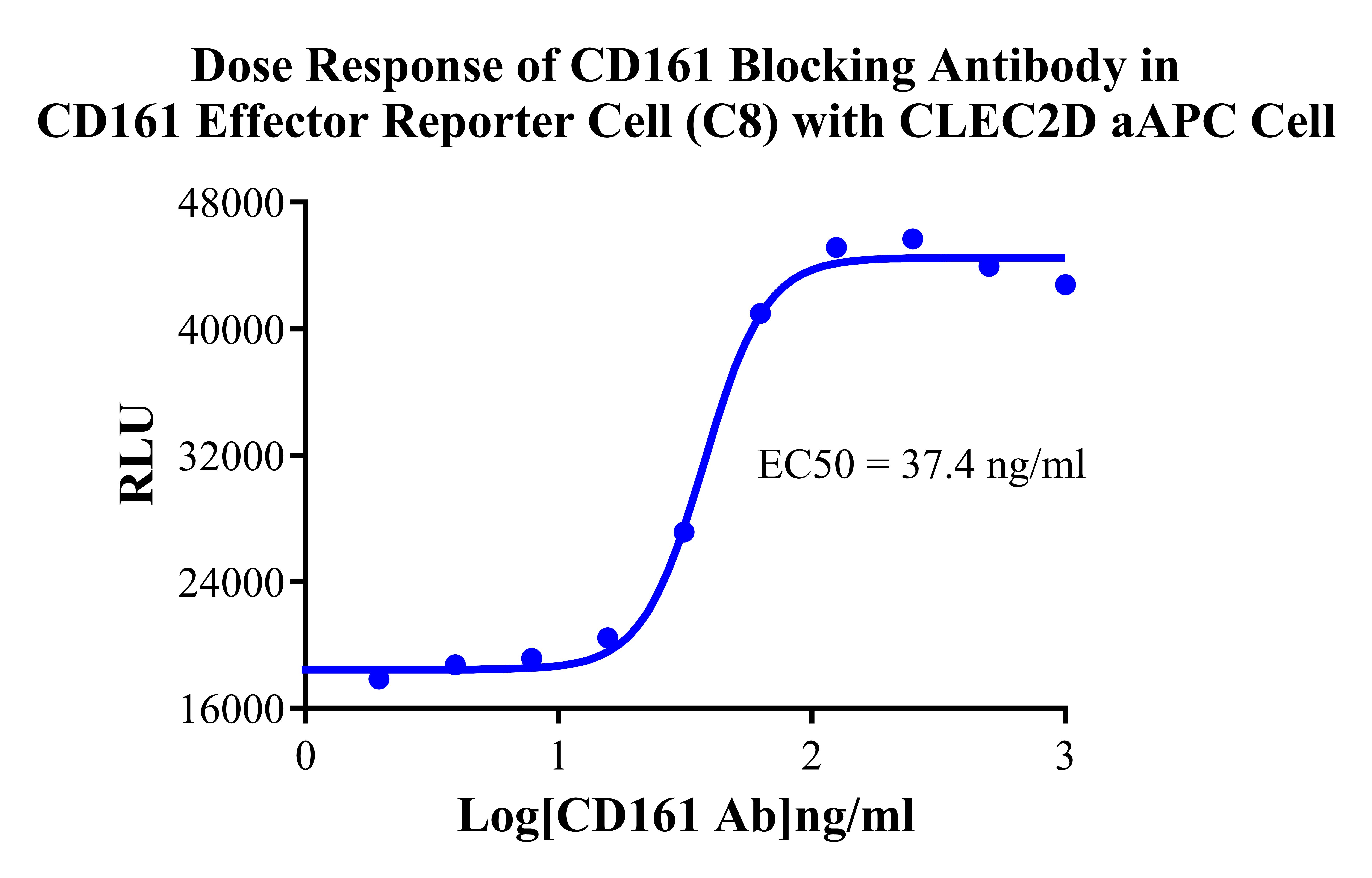 Figure 2. Dose Response of CD161 Blocking Antibody in CD161 Effector Reporter Cell (C8) with CLEC2D aAPC Cell. |