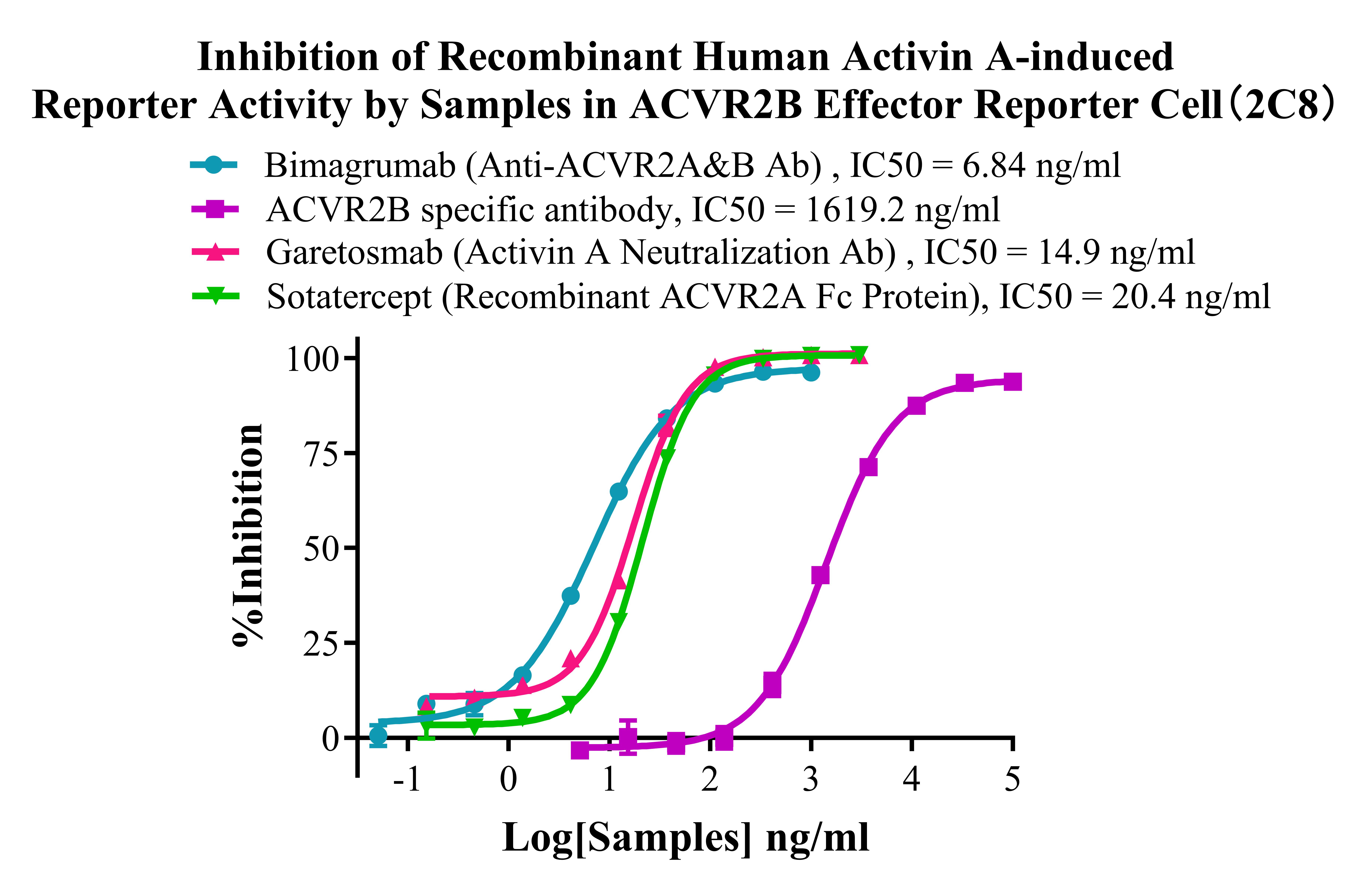 Figure 5. Inhibition of Recombinant Human Activin A-induced Reporter Activity by Samples in ACVR2B Effector Reporter Cell (2C8).