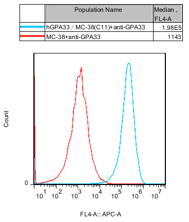 | hGPA33/MC-38 細胞,在 MC-38 細胞的基礎上,穩(wěn)定表達人 GPA33。 | |