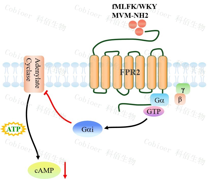 | 甲酰肽受體(FPR)屬于 G 蛋白偶聯(lián)受體(GPCR)家族,是趨化受體和模式識(shí)別受 體(PRR),可識(shí)別細(xì)菌和線粒體衍生的甲?;?。FPRs 家族包括三個(gè)成員(FPR1、 FPR2 和 FPR3),它們?cè)诙喾N組織和細(xì)胞類型中廣泛表達(dá),調(diào)節(jié)多種生物功能,如血管生 成、細(xì)胞增殖和防止細(xì)胞死亡。 FPR 在吞噬細(xì)胞中轉(zhuǎn)導(dǎo)趨化信號(hào),這些吞噬細(xì)胞與組織損傷相關(guān)的趨化分子模式發(fā)生 反應(yīng),這些分子模式介導(dǎo)細(xì)胞粘附、定向遷移、脫顆粒和超氧化物產(chǎn)生,從而通過(guò)細(xì)胞內(nèi) 鈣動(dòng)員和 MAPK、ERK、PI3K、Akt 和 p38/MAPK 信號(hào)轉(zhuǎn)導(dǎo)來(lái)調(diào)節(jié)宿主防御和炎癥反應(yīng)途 徑。 | |