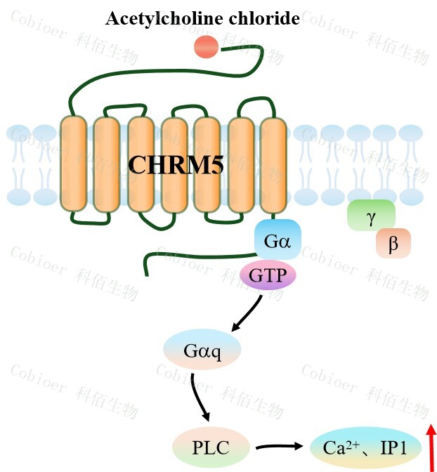 | CHRM5(Cholinergic Receptor Muscarinic 5)是毒蕈堿型乙酰膽堿受體(mAChRs)家 族成員之一,屬于 GPCR,主要分布于中樞神經(jīng)系統(tǒng)(如中腦多巴胺能神經(jīng)元、紋狀體) 及外周組織(如胰島β細胞),通過調(diào)控乙酰膽堿(ACh)信號影響獎賞通路、代謝穩(wěn)態(tài)及 藥物成癮行為。ACh 結(jié)合 CHRM5 后激活 Gq/11 蛋白,激活 PLCβ通路,水解 PIP2 生成 IP 3 和 DAG,驅(qū)動鈣離子釋放及 PKC 活化;也通過β-arrestin 通路調(diào)控 ERK 磷酸化,影響基 因表達與細胞增殖。 | |