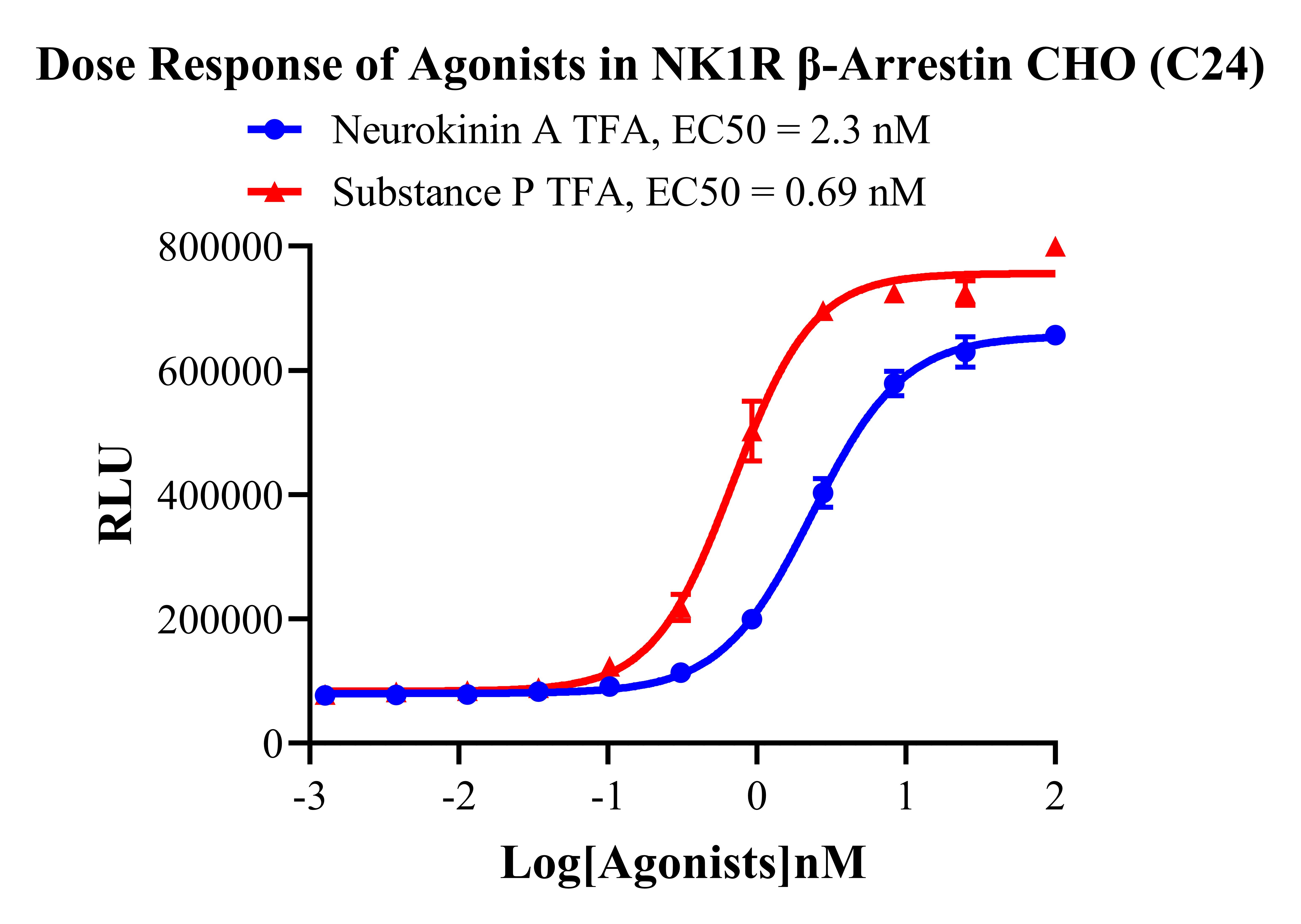 Figure 3. Dose Response of Agonists in NK1R β-Arrestin CHO (C24). |