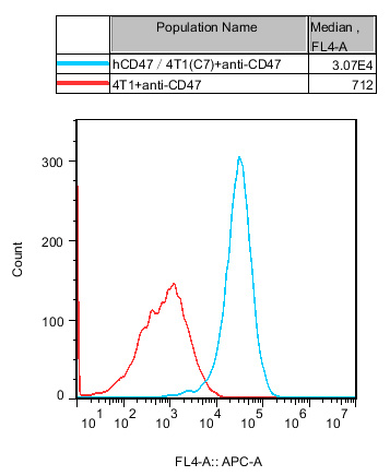 IV. Representative Data![]() Figure1.Recombinant hCD47/4T1 stably expressing hCD47. |