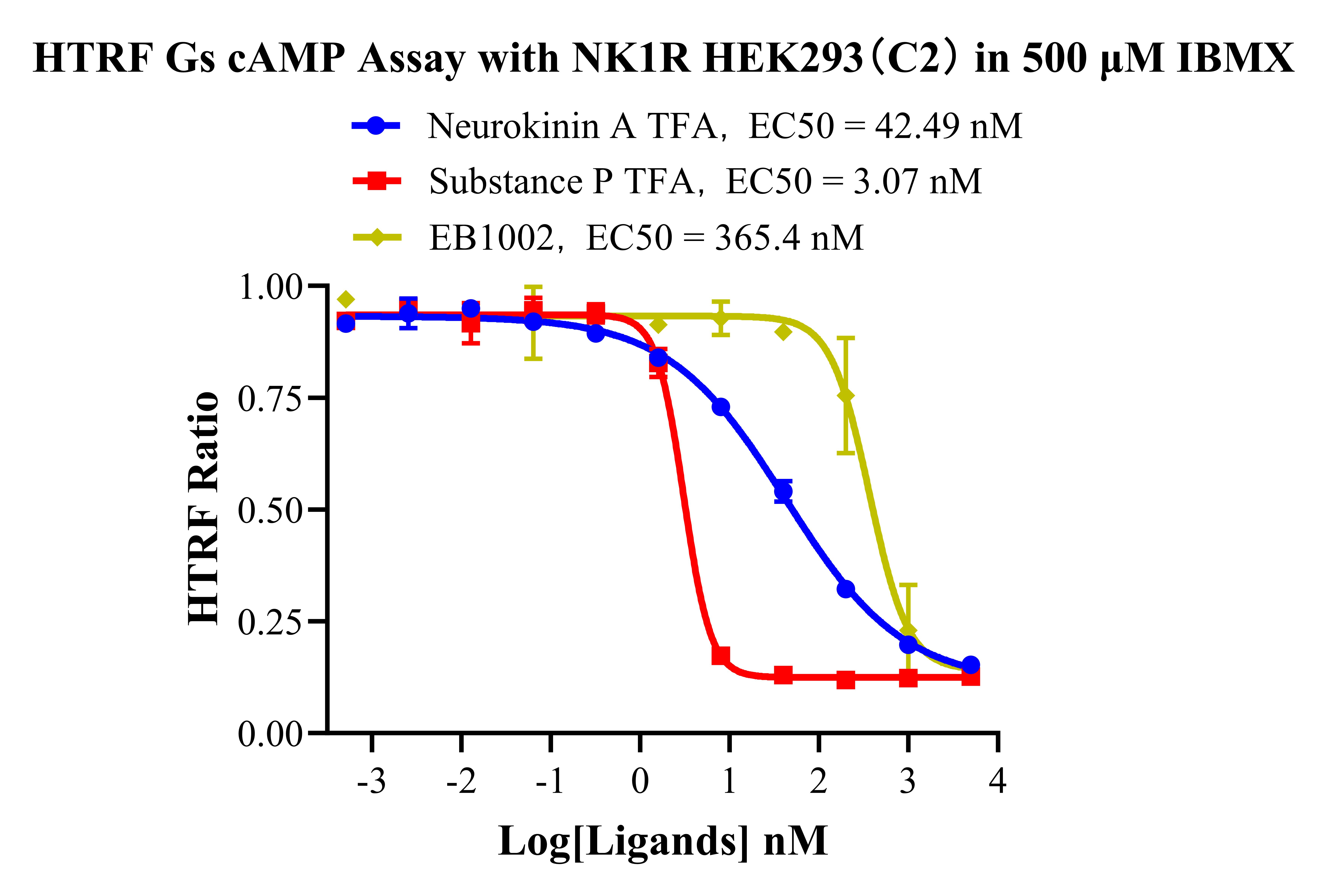 速激肽(Tachykinins )是分布在哺乳動物中樞和周圍神經(jīng)系統(tǒng)中的一類神經(jīng)肽。速激 肽物質(zhì) P(SP)、神經(jīng)激肽 A(NKA)和神經(jīng)激肽 B(NKB)共享一個保守的 C 端基序, 對速激肽受體(NK1R、NK2R 和 NK3R)的激活至關(guān)重要。NKA 優(yōu)先激活與 Gα偶聯(lián)的 NK2R,而 SP 和 NKB 分別優(yōu)先結(jié)合 NK1R 和 NK3R。三種速激肽都能夠在所有速激肽受 體類型中表現(xiàn)為完全激動劑。 NK1R(Neurokinin 1 Receptor),又稱 TACR1,是速激肽受體家族的核心成員,其內(nèi) 源性配體為 P 物質(zhì)(Substance P)。 |