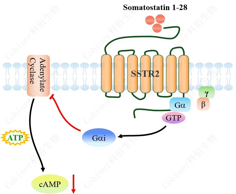 生長抑素受體(Somatostatin receptor,SSTRs)是 GPCR 超家族中的 class A 家族的成 員,共有 5 種亞型,分別為 SSTR1-SSTR5,其中 SSTR2 是唯一一種有 SSTR2a 和 SSTR2b 這 2 種異構體的 SSTR 亞型受體蛋白。SSTR2 廣泛分布于正常組織中,如腦下垂體、胰島、 腎上腺、胸腺、胃腸道以及免疫系統(tǒng)等,在不同受體的組織,表達譜各不相同。 |