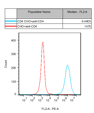 | CD4 CHO 細胞,在 CHO-K1 細胞的基礎(chǔ)上,穩(wěn)定表達人 CD4。 | |