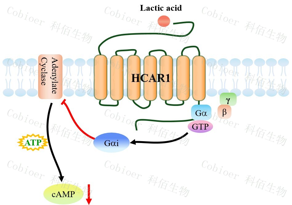 HCAR1(羥基羧酸受體 1),亦稱 GPR81,是一種分布于脂肪組織、免疫細胞(如巨 噬細胞)、神經(jīng)元及肝細胞的 G 蛋白偶聯(lián)受體(GPCR),屬于羥基羧酸受體亞家族,其 內(nèi)源性配體為乳酸(L-lactate);該受體通過偶聯(lián) Gi/o 蛋白,抑制腺苷酸環(huán)化酶,降低 cAMP 水平,從而抑制 PKA 信號,同時激活β-arrestin 通路。其核心功能包括,在脂肪組織 中抑制脂解、促進脂質(zhì)儲存,在免疫細胞中調(diào)控炎癥反應(如抑制促炎因子釋放、促進 M2 型巨噬細胞極化),在神經(jīng)系統(tǒng)中參與乳酸介導的神經(jīng)保護及能量穩(wěn)態(tài)調(diào)節(jié);其信號 異常與代謝性疾?。ㄈ绶逝?、胰島素抵抗)、神經(jīng)炎癥疾?。ǘ喟l(fā)性硬化、腦缺血)及腫 瘤微環(huán)境重塑(乳酸介導的免疫逃逸)密切相關(guān),尤其在腫瘤組織中高表達的 HCAR1 可 通過抑制抗腫瘤免疫應答促進進展,成為代謝-免疫交叉治療的潛在靶點。 |
