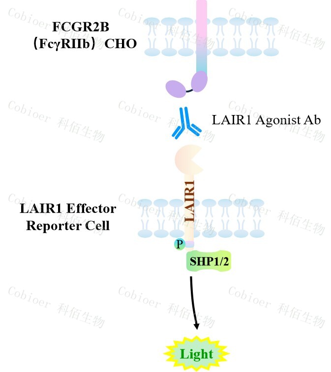 LAIR1 Effector Reporter Cell 報告基因藥靶模型很好的模擬了體內(nèi) LAIR1 的信號轉導過程,原理見下圖所示。![]() Figure 1.LAIR1 Effector Reporter Cell 細胞模型原理圖 |