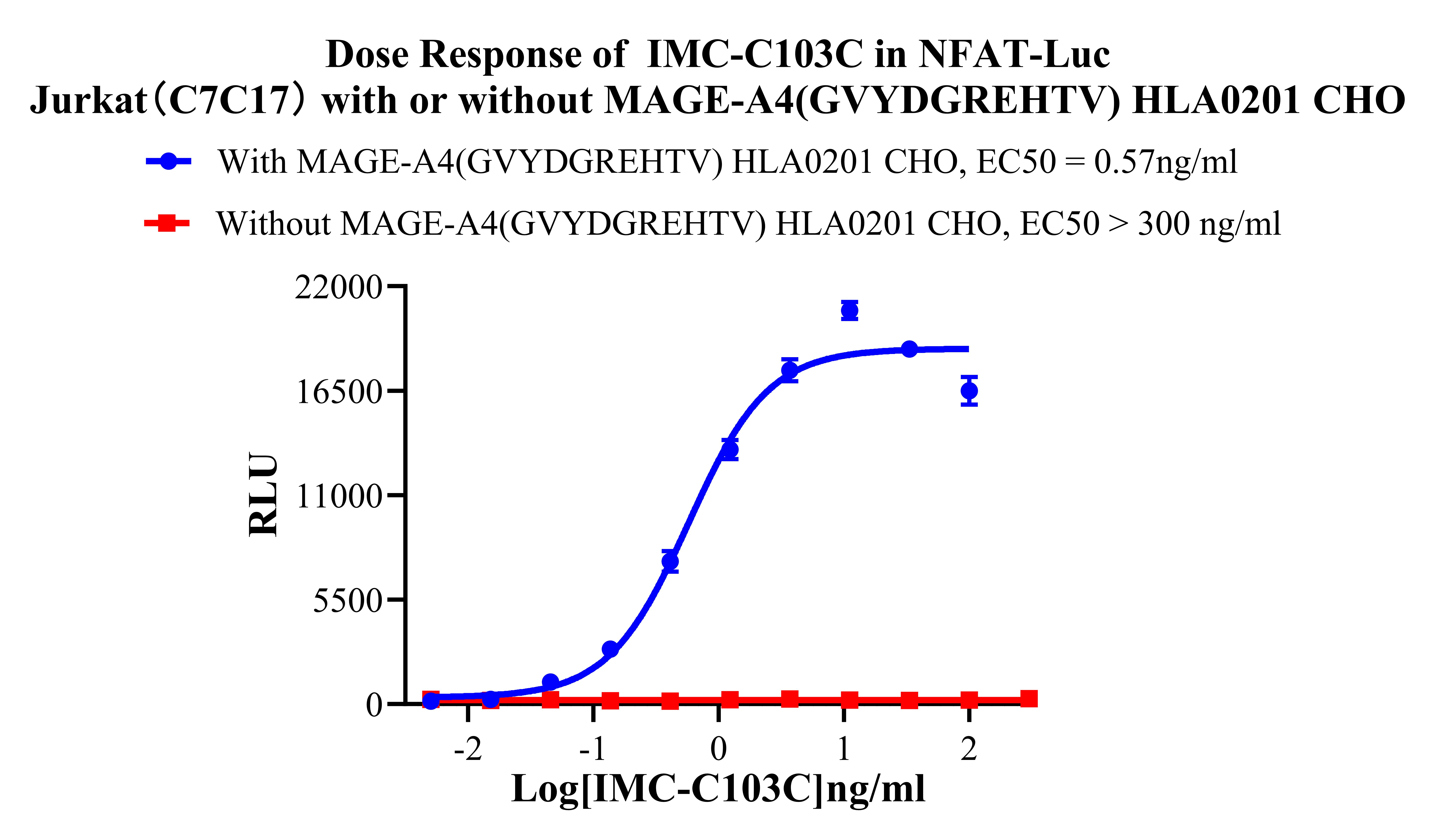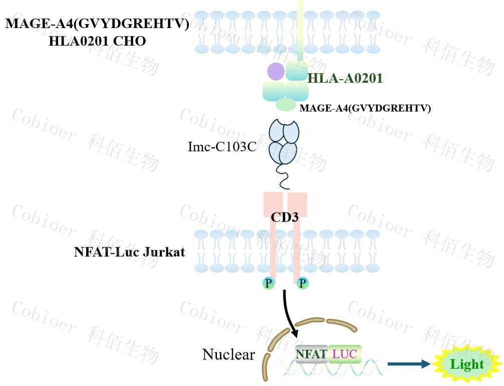 HLA-A*0201-MAGEA4 復(fù)合物是人類白細胞抗原(HLA)Ⅰ類分子與 MAGEA4 抗原肽的復(fù)合體,屬于主要組織相容性復(fù)合體(MHC)Ⅰ類家族成員。該復(fù)合物常用于 T 細胞 受體(TCR)療法,通過激活 T 細胞以識別并殺傷腫瘤細胞,原理見下圖所示。![]() Figure 1. MAGE-A4(GVYDGREHTV) HLA0201 CHO 細胞模型圖 |