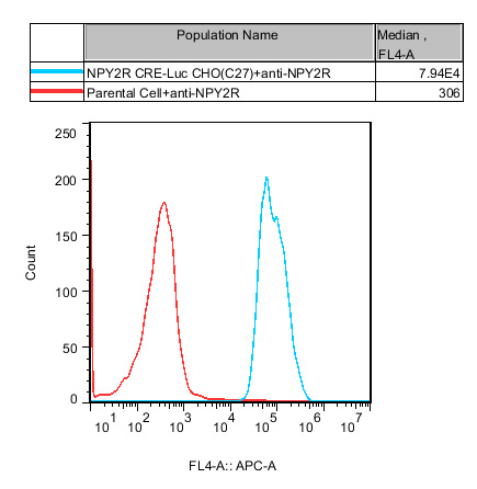 NPY2R CRE-Luc CHO 藥靶模型很好的模擬了體內(nèi) NPY2R 的信號(hào)轉(zhuǎn)導(dǎo)過程,原理見下圖所示。![]() Figure 1. NPY2R CRE-Luc CHO 細(xì)胞模型原理圖 |