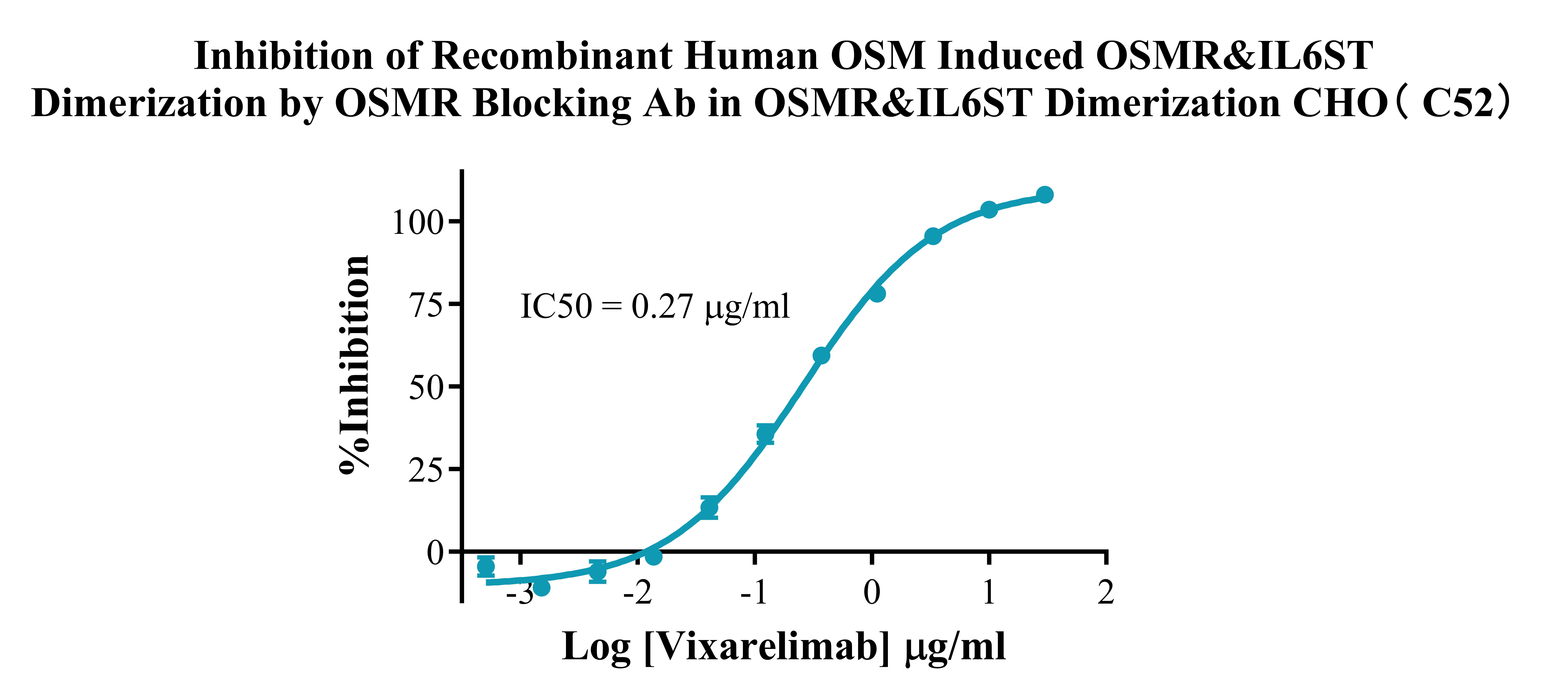 ![]() Figure 3. Inhibition of Recombinant Human OSM induced OSMR&IL6ST Dimerization by OSMR Blocking Ab in OSMR&IL6ST Dimerization CHO (C52). |