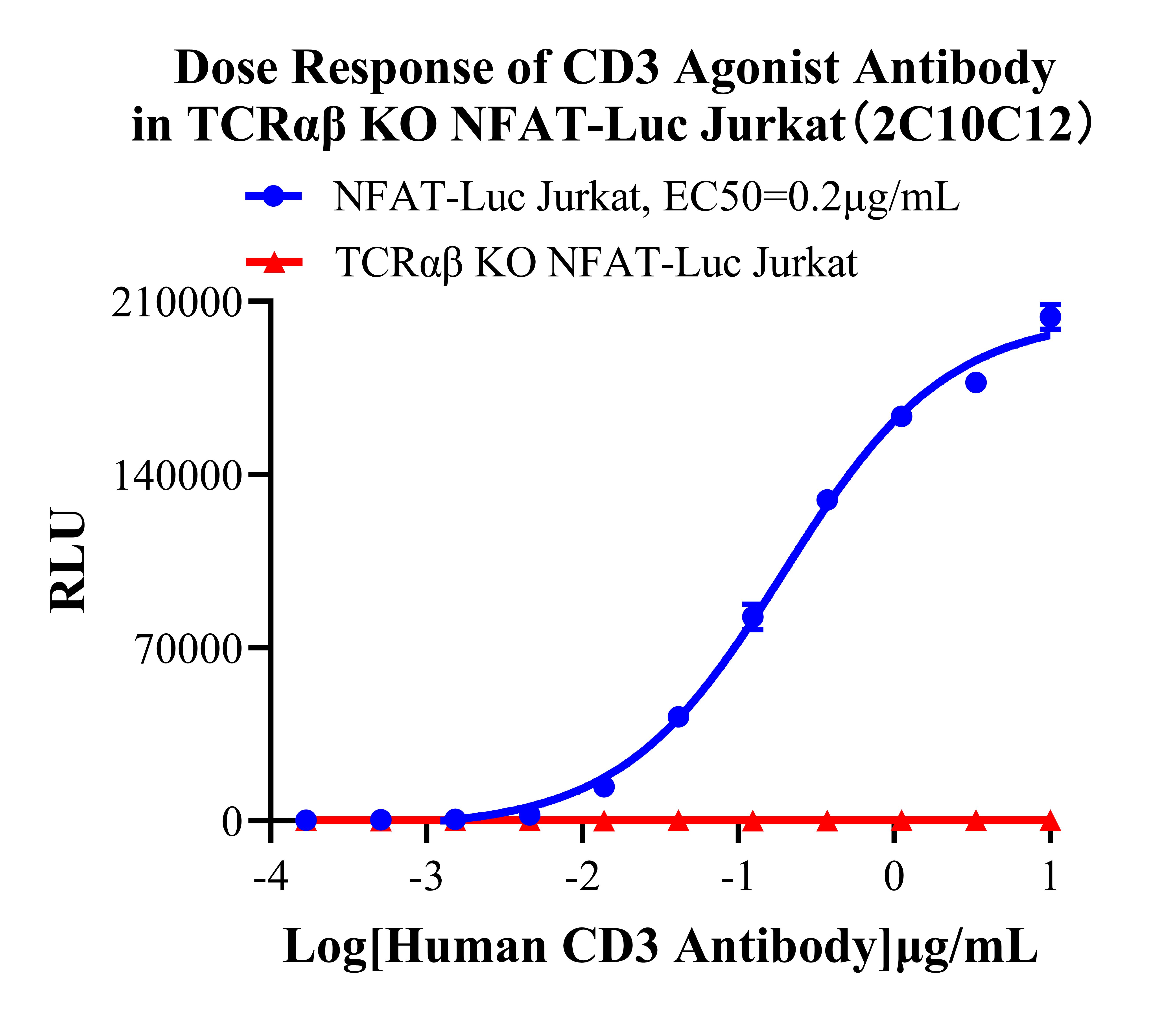 ![]() Figure 7. Dose Response of CD3 Agonist Antibody in TCRαβ KO NFAT-Luc Jurkat(2C10C12). |