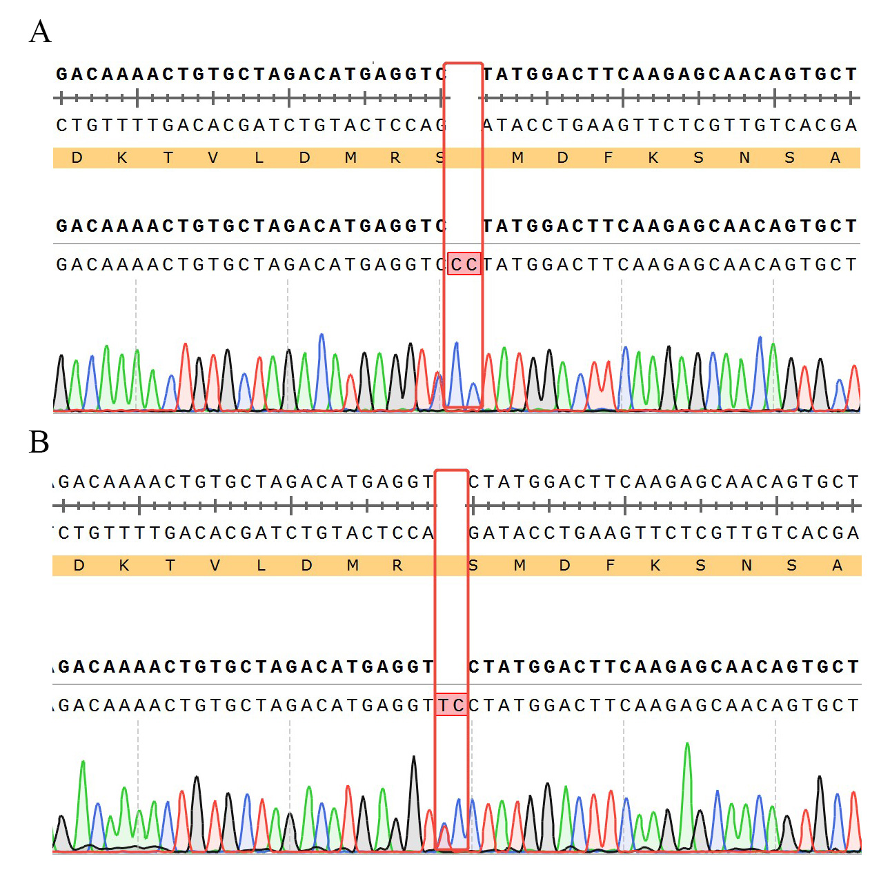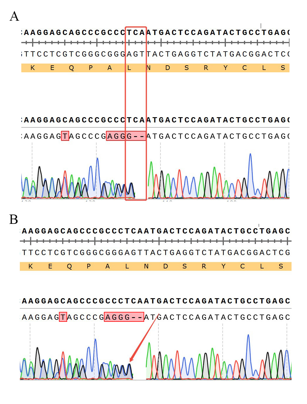 ![]() Figure 6. TRBC1 KO 的測序結(jié)果 A:chr7-142791898-TCA-C (TRBC1:p.L68Pfs*2)