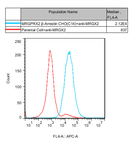 MRGPRX2 β-Arrestin CHO 報(bào)告基因藥靶模型很好的模擬了體內(nèi) MRGPRX2/β-Arrestin 的信號轉(zhuǎn)導(dǎo)過程,原理見下圖所示。當(dāng)缺乏配體刺激時(shí),β-Arrestin 不與 MRGPRX2 結(jié)合, 融合β-Arrestin 的熒光素酶處于失活構(gòu)象;當(dāng) MRGPRX2 遭遇配體刺激時(shí),融合熒光素酶報(bào) 告基因的β-Arrestin 被招募,使熒光素酶報(bào)告基因處于激活狀態(tài),加入其底物后發(fā)光信號增 強(qiáng)。![]() Figure 1. MRGPRX2 β-Arrestin CHO 細(xì)胞模型原理圖 |