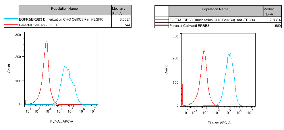 ![]() Figure 2. Recombinant EGFR&ERBB3 Dimerization CHO stably expressing EGFR&ERBB3. ![]() Figure 3. Dose Response of Ligands in EGFR&ERRB3 Dimerization CHO Cell( C3).