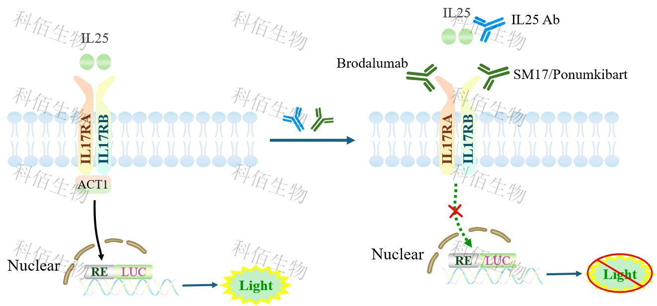 IL25 Effector Reporter Cell(Adherent)報(bào)告基因藥靶模型很好的模擬了體內(nèi) IL25 的信號轉(zhuǎn)導(dǎo)過程,原理見下圖所示。![]() Figure 1. IL25 Effector Reporter Cell(Adherent)細(xì)胞模型原理圖 |