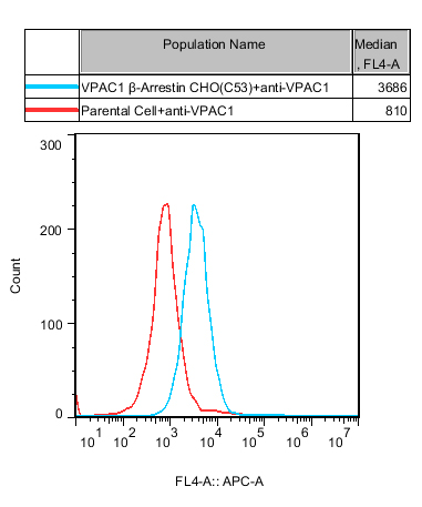 V. Representative Data![]() Figure 1. Recombinant VPAC1 β-Arrestin CHO stably expressing VPAC1. ![]() Figure 2. Dose Response of Agonists in VPAC1 β-Arrestin CHO(C53). ![]() Figure 3. Inhibition of PACAP 1-38 induced β-Arrestin Recruitment by PACAP38 Neutralization Ab in VPAC1 β-Arrestin CHO(C53). |
