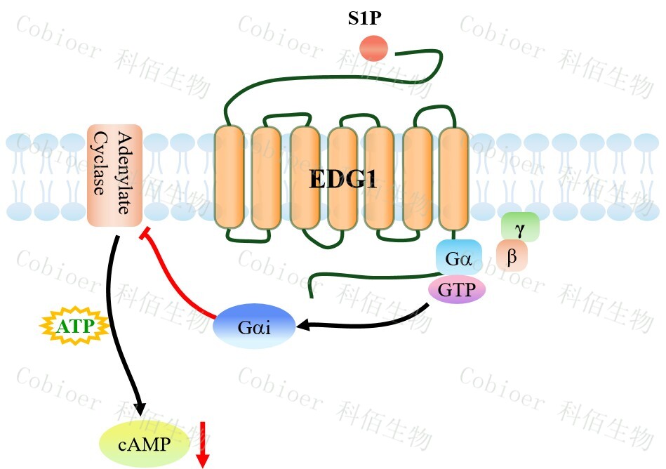 cAMP 在 G 蛋白偶聯(lián)受體(GPCR)信號轉(zhuǎn)導(dǎo)中是一種關(guān)鍵的第二信使。當(dāng)配體結(jié)合 到 GPCR,構(gòu)象發(fā)生變化,激活受體接著激活 G 蛋白,Gi 的激活導(dǎo)致腺苷酸環(huán)化酶調(diào)控 cAMP 的下調(diào)。EDG1(S1P1) CHO 藥靶模型很好的模擬了體內(nèi) EDG1(S1P1)的信號轉(zhuǎn)導(dǎo)過程, 原理見下圖所示。![]() Figure 1. EDG1(S1P1) CHO 細(xì)胞模型原理圖