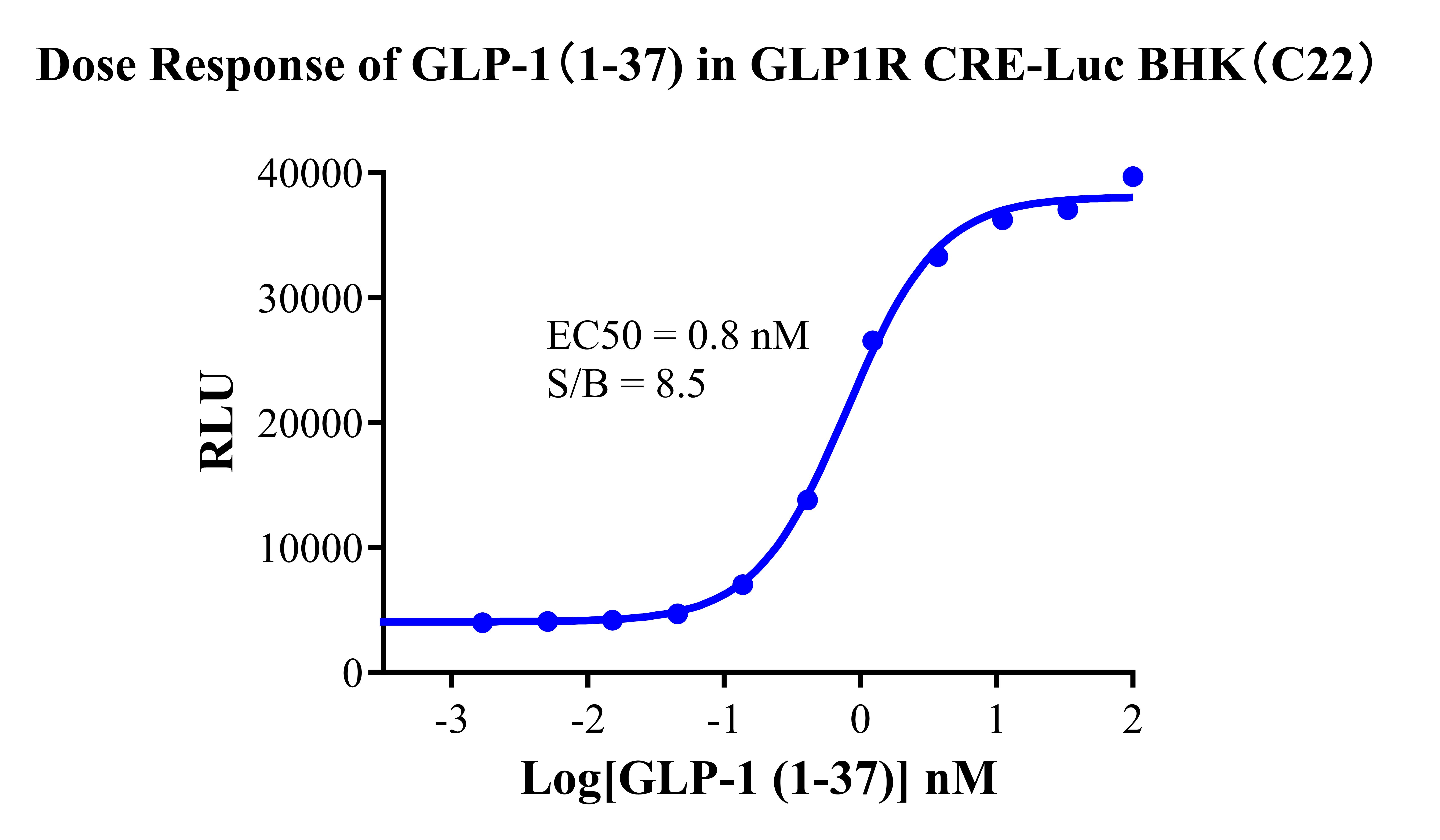 Figure 2.Dose response of GLP-1(1-37) in GLP1R CRE-Luc BHK Cell(C22). |