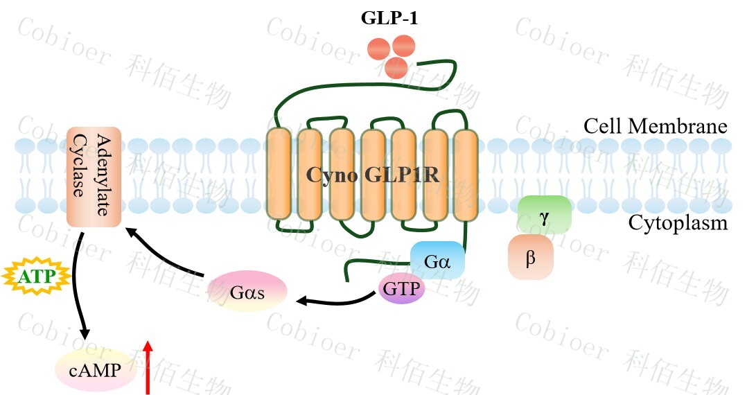 GLP1R 藥靶模型很好的模擬了體內(nèi) GLP1R 的信號(hào)轉(zhuǎn)導(dǎo)過程,原理見下圖所示。 ![]() Figure 1. Cyno GLP1R CHO 細(xì)胞模型原理圖