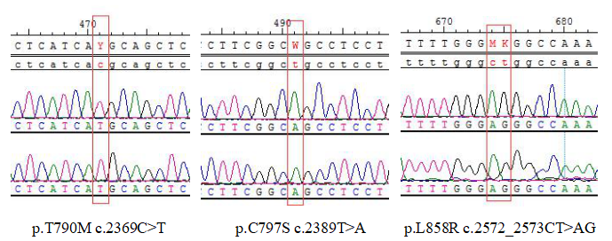Figure 2. Sanger Sequencing of EGFR-L858R/T790M/C797S |