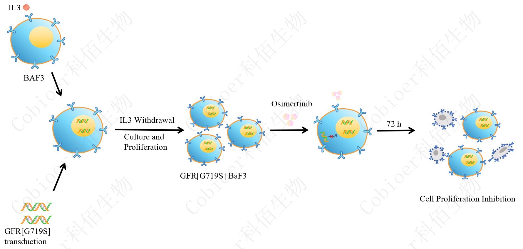 BaF3(小鼠原 B 細(xì)胞)的生長(zhǎng)和增殖需要 IL-3 的維持。通過(guò)引入各種表達(dá)激酶的基因, 能作為 BaF3 的驅(qū)動(dòng)基因,讓 BaF3 不再依賴 IL-3 而增殖,進(jìn)而激酶基因成為 BaF3 增殖依 賴的驅(qū)動(dòng)基因,用于評(píng)估小分子藥物對(duì)激酶的靶向抑制作用,原理及流程見(jiàn)下圖所示。