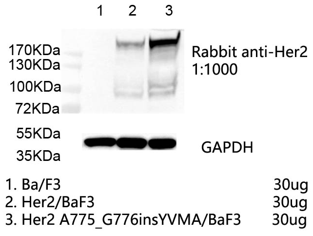 1. WB of Her2 A775_G776insYVMA/BaF3