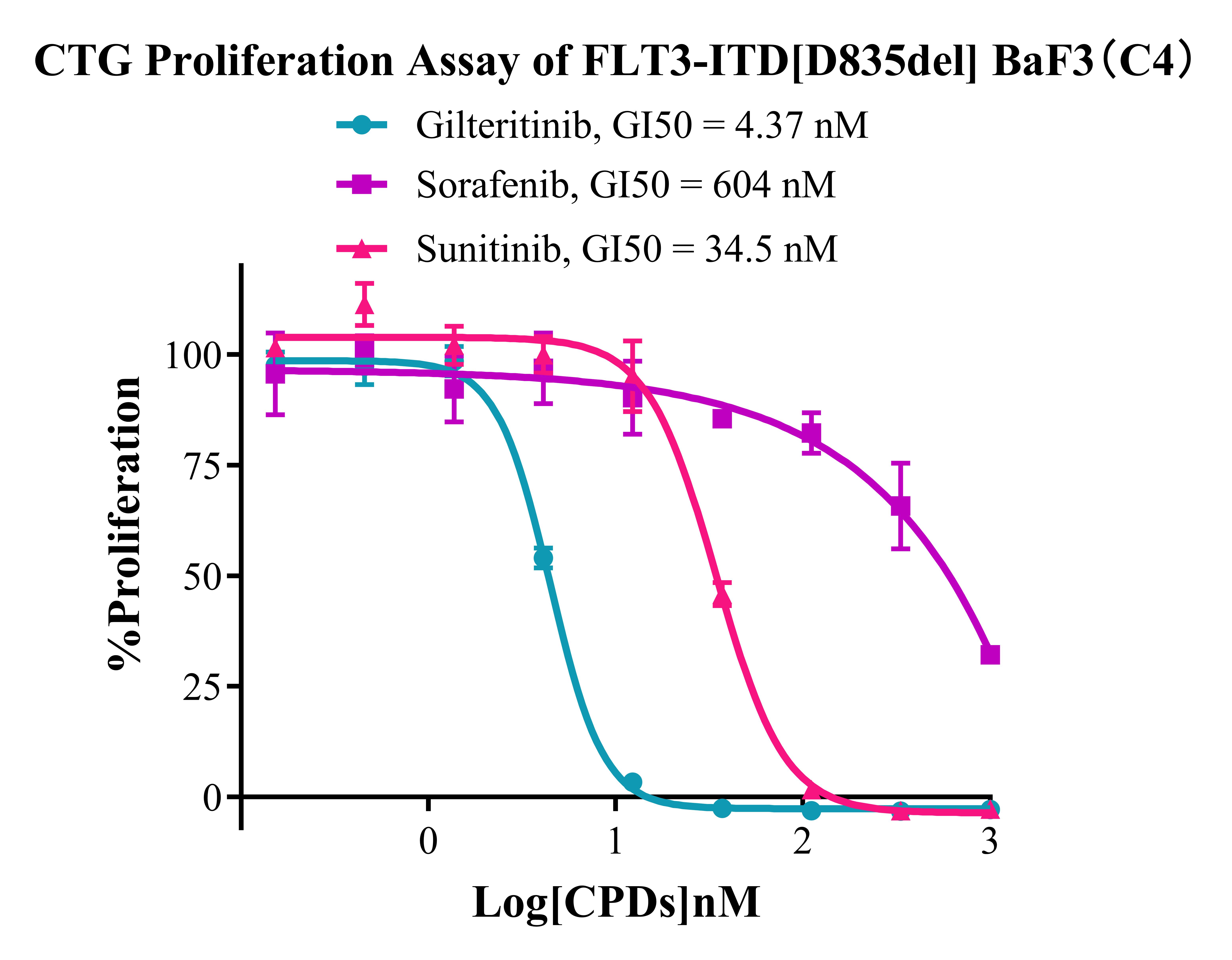 Figure 3. CTG Proliferation Assay of FLT3-ITD [D835del] BaF3(C4). |