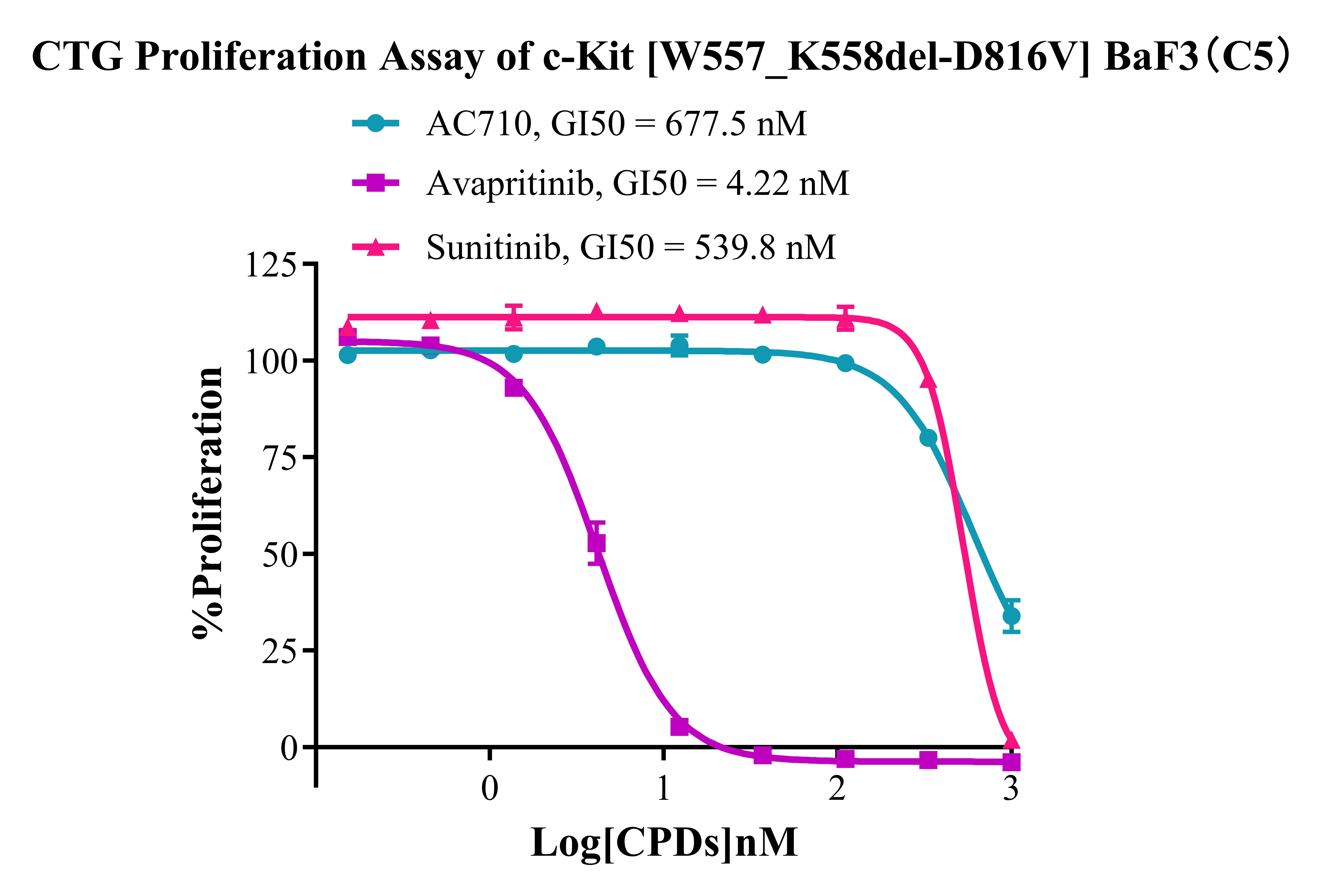 Figure 5. CTG Proliferation Assay of c-Kit [W557_ K558del-D816V]BaF3(C5). |