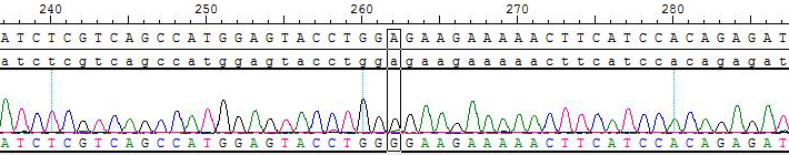 2.Sanger of BCR-ABL1 [E355G]/BaF3 Figure 3. BCR-ABL1 [E355G]/BaF3 E355G Figure 4. BCR-ABL1 [E355G]/BaF3 Fusion |