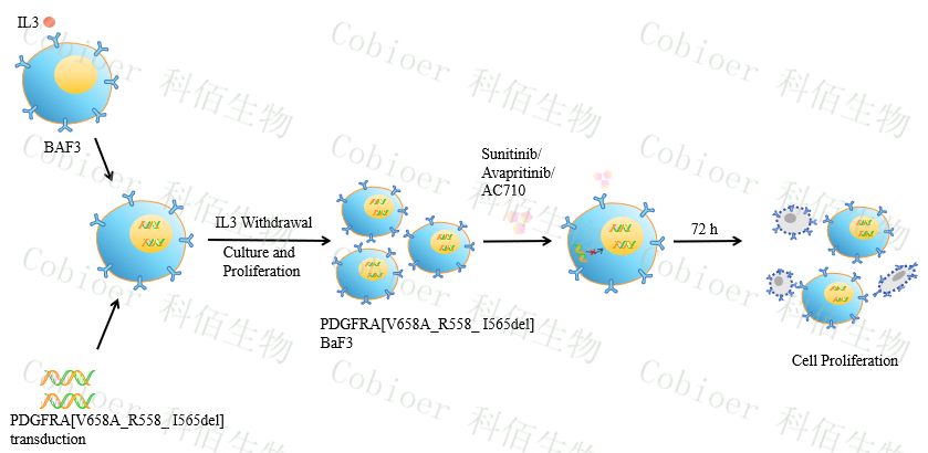 PDGFRA[V658A_R558_I565del] BaF3 藥靶細(xì)胞,通過(guò)轉(zhuǎn)導(dǎo)突變狀態(tài)的 PDGFRA[V658A_R558_I565del] 基因到 BaF3 細(xì)胞系中 ,穩(wěn)定表達(dá)人突變形態(tài)下的PDGFRA[V658A_R558_I565del] 基因。