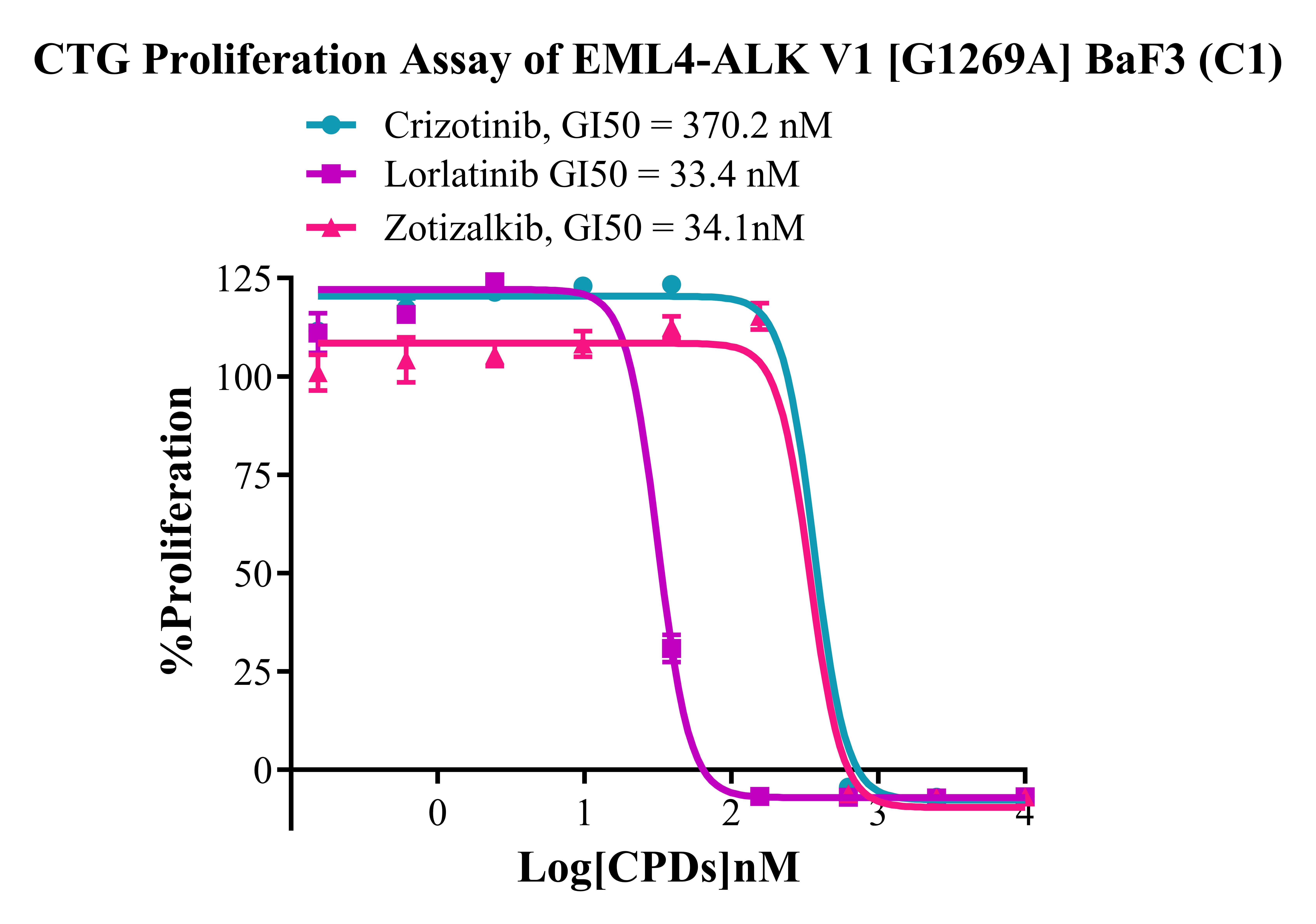 Figure 4. CTG Proliferation Assay of EML4-ALK V1 [G1269A] BaF3(C1). |