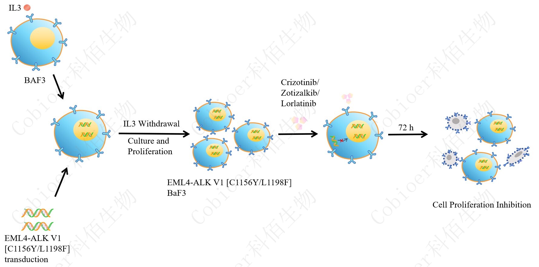 BaF3(小鼠原 B 細(xì)胞)的生長和增殖需要 IL-3 的維持。通過引入各種表達激酶的基因, 能作為 BaF3 的驅(qū)動基因,讓 BaF3 不再依賴 IL-3 而增殖,進而激酶基因成為 BaF3 增殖依 賴的驅(qū)動基因,用于評估小分子藥物對激酶的靶向抑制作用,原理及流程見下圖所示。