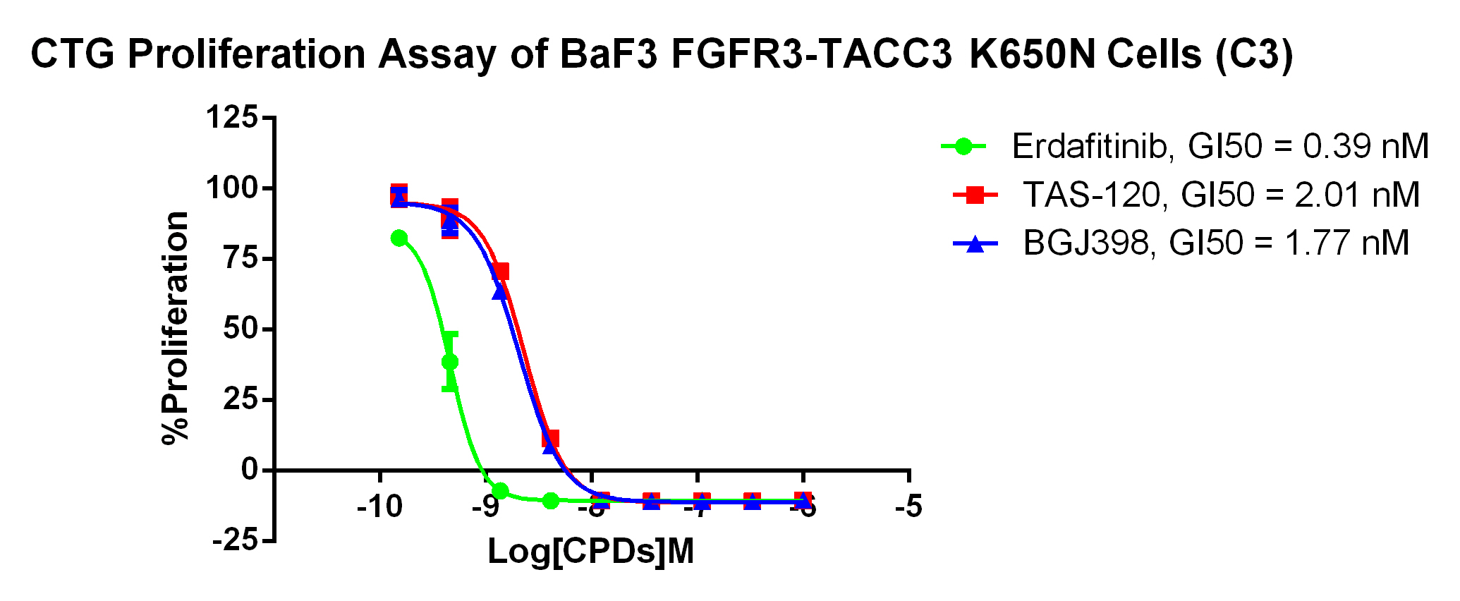 Figure 4. CTG Proliferation Assay of BaF3 FGFR3-TACC3 K650N Cells (C3). |