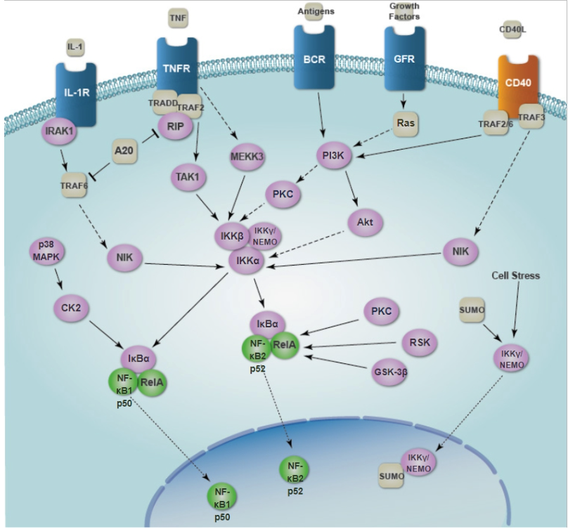 | Description: | pNFkB-Luc is designed for monitoring the activation of the nuclear factor of kappa light polypeptide gene enhancer in B-cells (NFkB) signal transduction pathway. NFKB is a transcription regulator that is activated by various intra- and extra-cellular stimuli such as cytokines, oxidant-free radicals, ultraviolet irradiation, and bacterial or viral products. Activated NFKB translocates into the nucleus and stimulates the expression of genes involved in a wide variety of biological functions. |