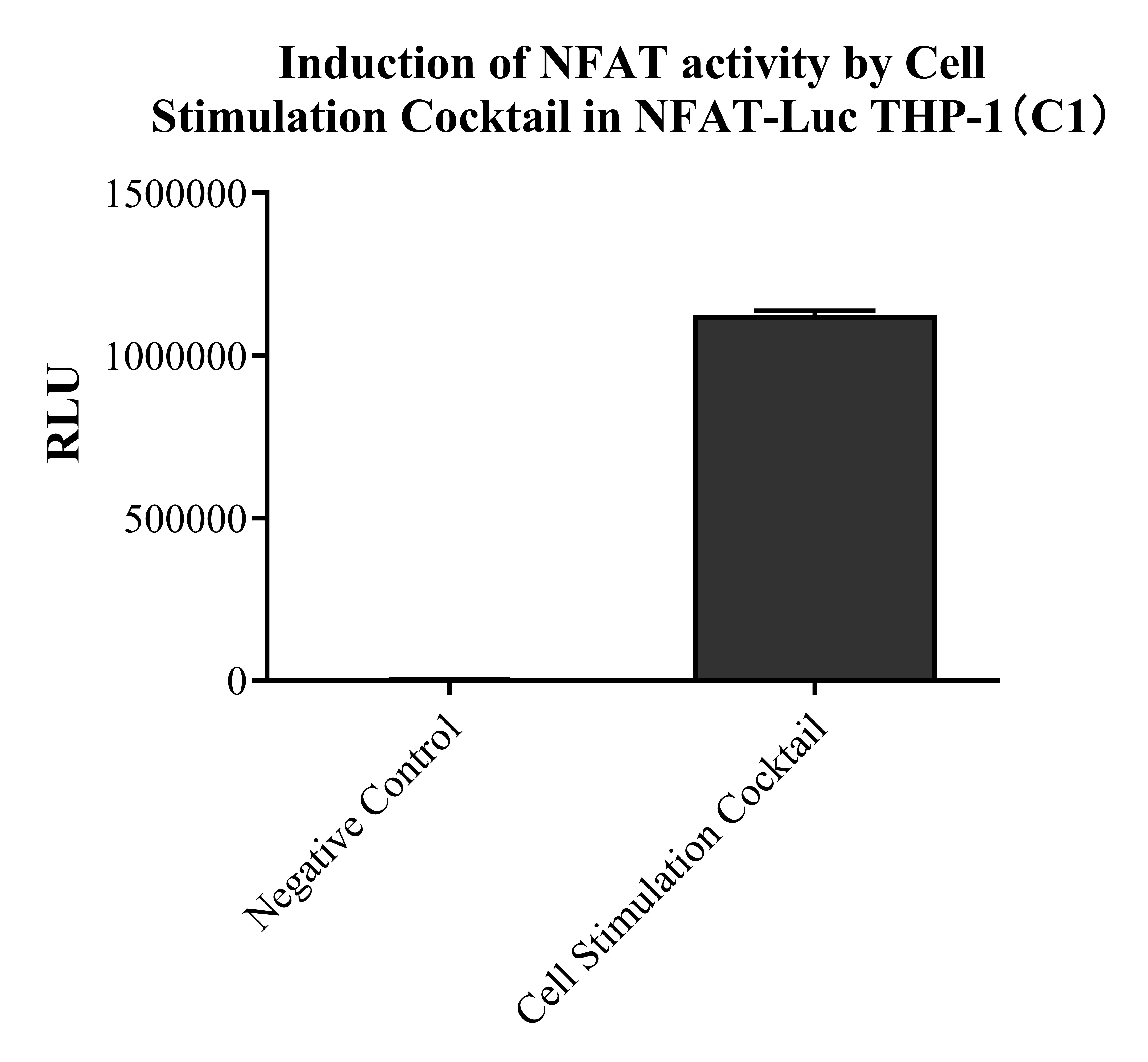 NFAT-Luc THP-1 報告基因藥靶模型很好的模擬了體內 NFAT 的信號轉導過程,原理見下圖所示。![]() Figure 1. NFAT Stimulation Assay 驗證結果 |