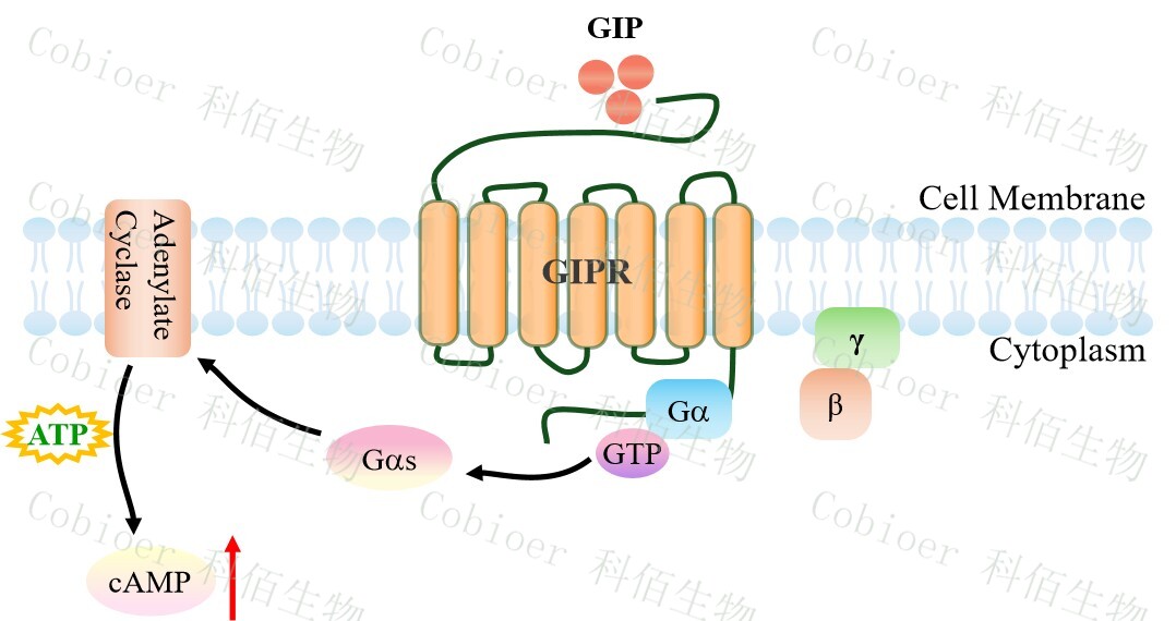 葡萄糖依賴性胰島素促泌多肽(又稱抑胃肽,GIP)、胰高血糖素樣肽-1(GLP-1)和胰高血糖素(GCG)是負(fù)責(zé)葡萄糖穩(wěn)態(tài)的肽激素。它們的同源受體 GIPR、GLP-1R 和GCGR 屬于 B1 類 G 蛋白偶聯(lián)受體 (GPCR) 家族。胃抑制多肽受體(GIPR)是 GIP 的受體,是一種具有 7 個跨膜結(jié)構(gòu)域的 G 蛋白偶聯(lián)受體。它與 GIP 激素結(jié)合,以葡萄糖誘導(dǎo)的方式增強(qiáng)胰腺 β 細(xì)胞胰島素的合成和分泌。胰腺 β 細(xì)胞上的 GIPR 在信號級聯(lián)中起著關(guān)鍵作用,導(dǎo)致血糖水平升高時胰島素釋放。