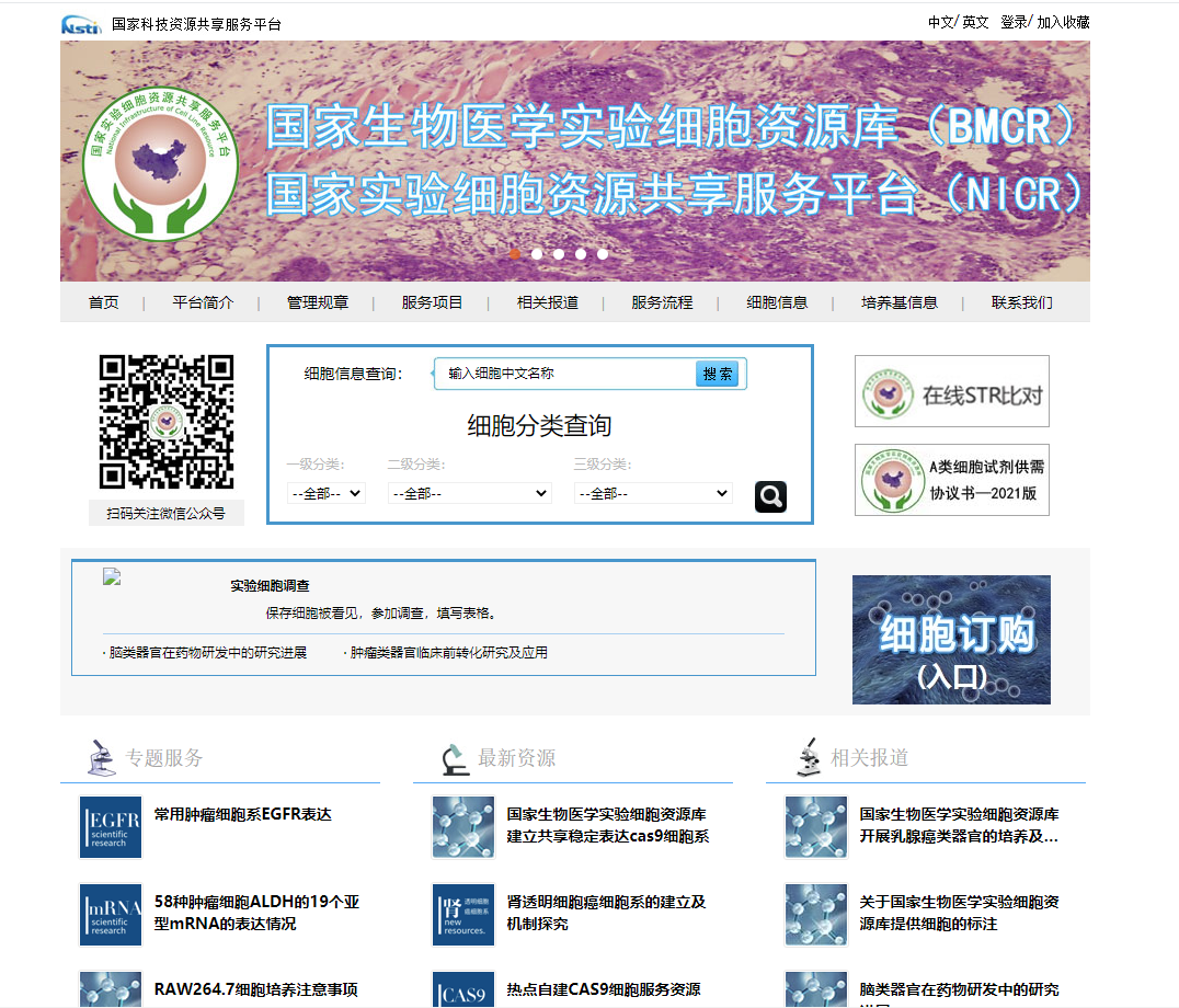 國家實驗細(xì)胞資源共享平臺